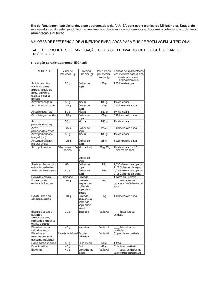 Tabelas De Referência De Porções De Alimentos E Bebidas Embalados