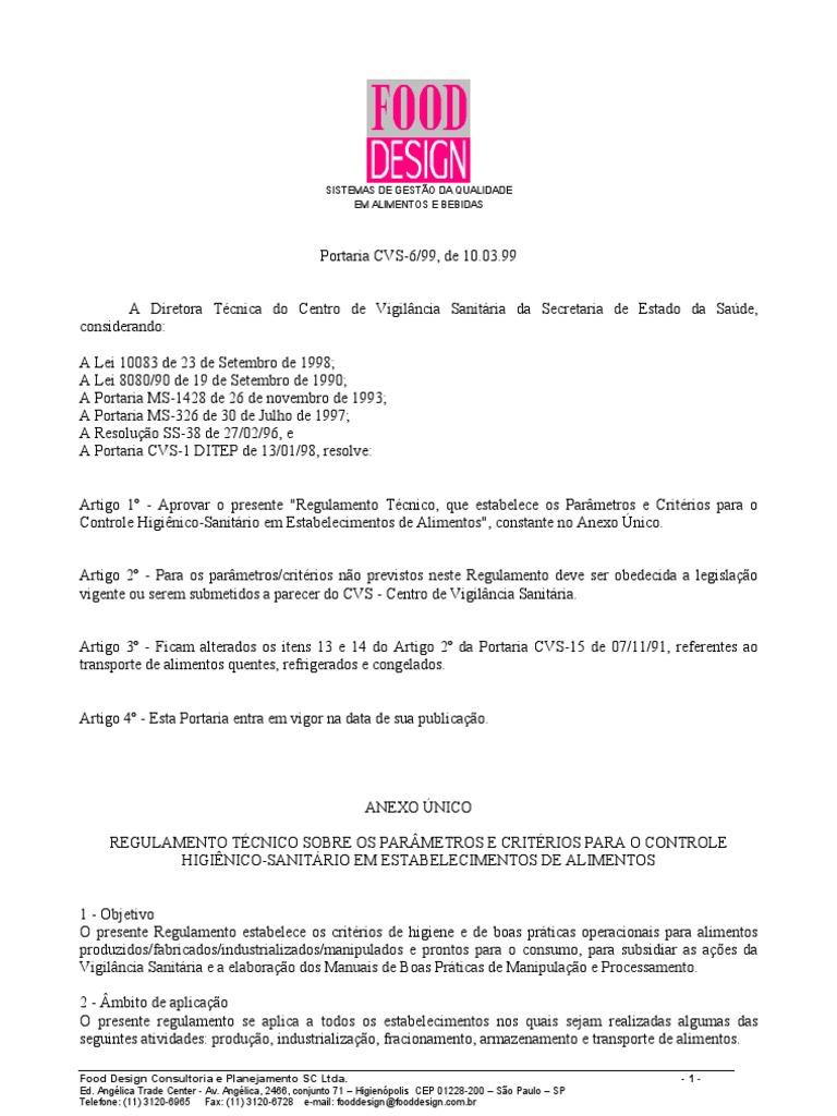 Portaria Cvs 6 10 03 1999 Higiene E Legislação De Alimento 4