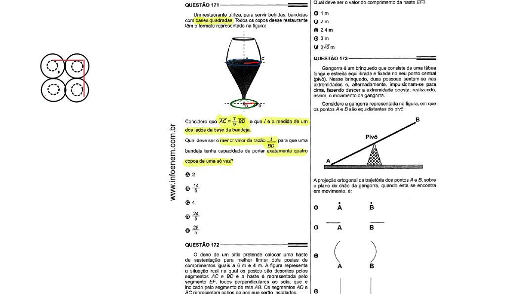 Estude a partir de provas anteriores questão 171 do enem 2013 um restaurante utiliza para servir bebidas bandejas com bases quadradas.
