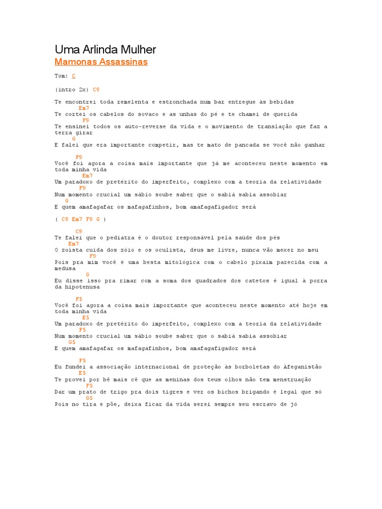 Uma Arlinda Mulher Chords Lyrics Mamonas Assassinas